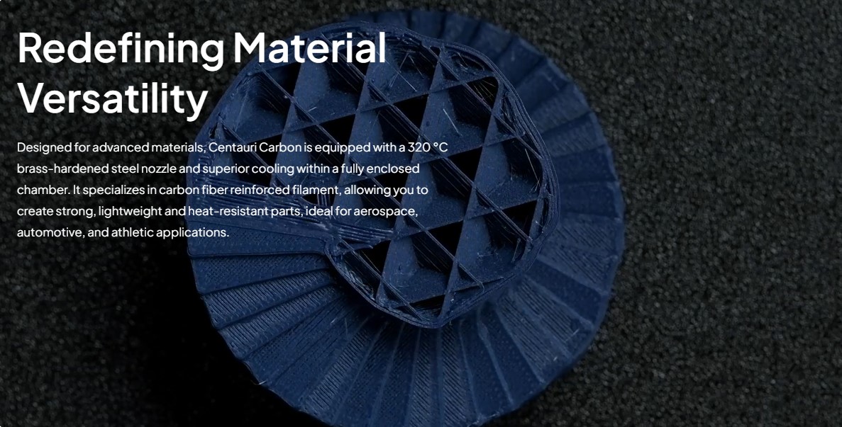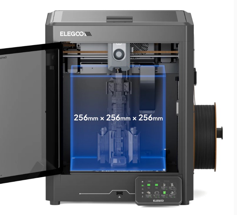با فضای ساخت 256 × 256 × 256 میلیمتر، Centauri Carbon برای تولید قطعات متوسط تا بزرگ مناسب است و بدنه بسته و کنترل دما به چاپ پایدار و دقیقتر با مواد چالشبرانگیز کمک میکند.