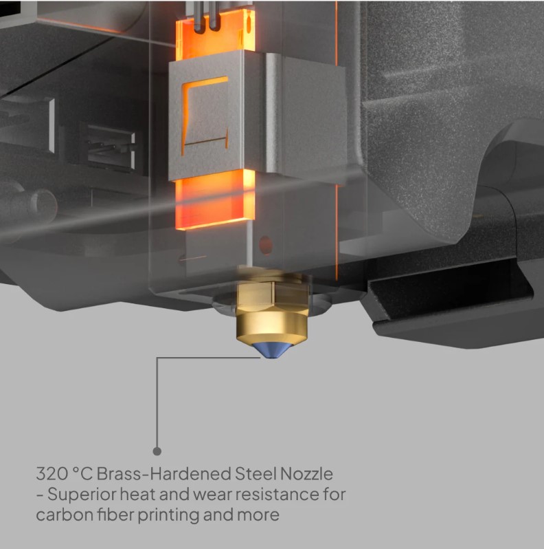 - سازگاری مواد: PLA, PETG, TPU, ABS, ASA, PC, PA, PLA-CF, PETG-CF و…