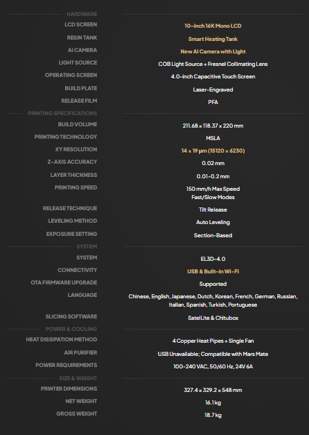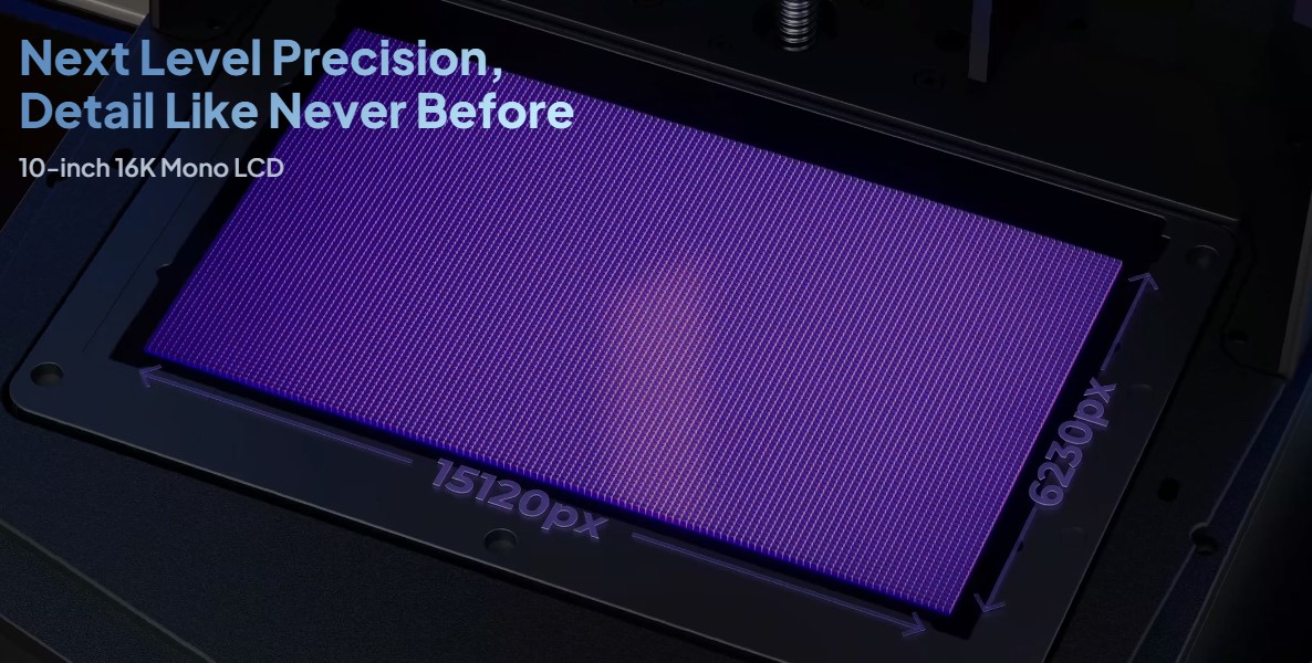 - رزولوشن LCD مونوکروم 16K: 15120 × 6230 پیکسل برای بالاترین وضوح و جزئیات چاپ.