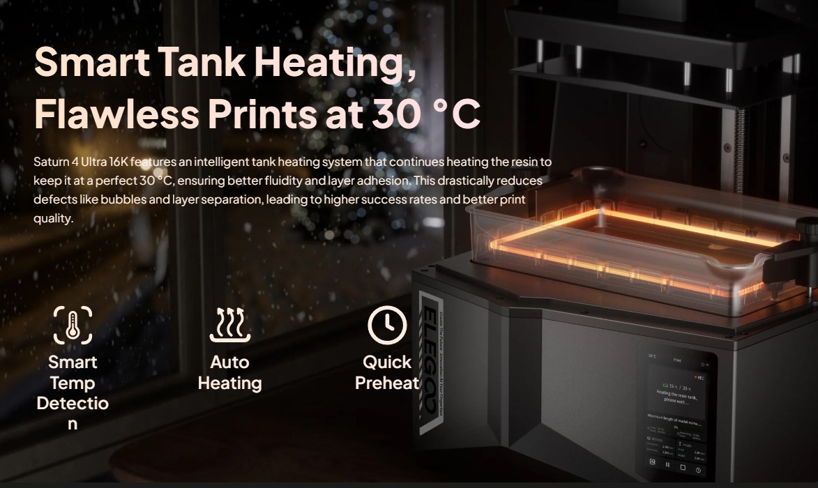 - سیستم هوشمند گرمایش مخزن رزین: دمای مخزن را در حدود 30 درجه سانتیگراد نگه میدارد تا چسبندگی و کیفیت لایهها بهبود یابد.